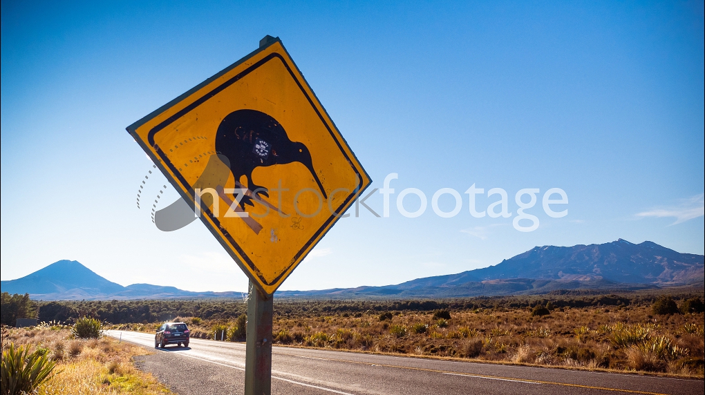 Kiwi Bird Road Sign and car state highway, Tongariro National Park