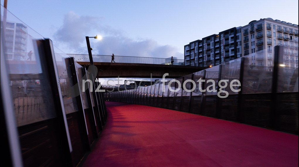 Pink Cycleway Auckland Nelson St, Bikes and pedestrians