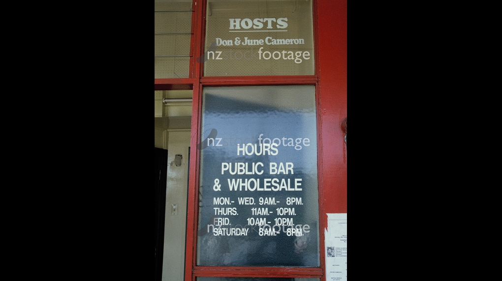 Signage showing Hosts name and opening hours -1980's Auckland pub historic