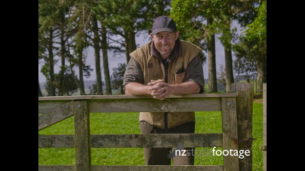 ID 34506 Farmer in Paddock with Cattle & Spade