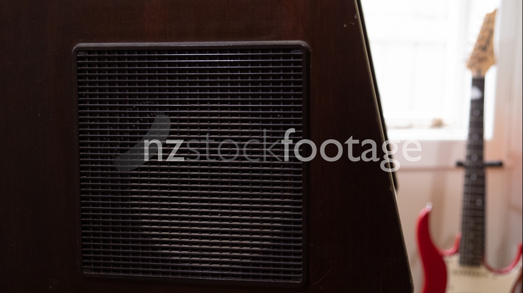Record LP Turntable old style valve radio and electric guitar.