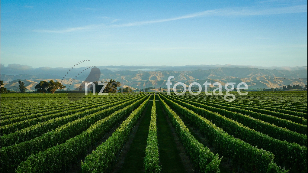 Rows of grape vines growing in vineyard Marlborough New Zealand