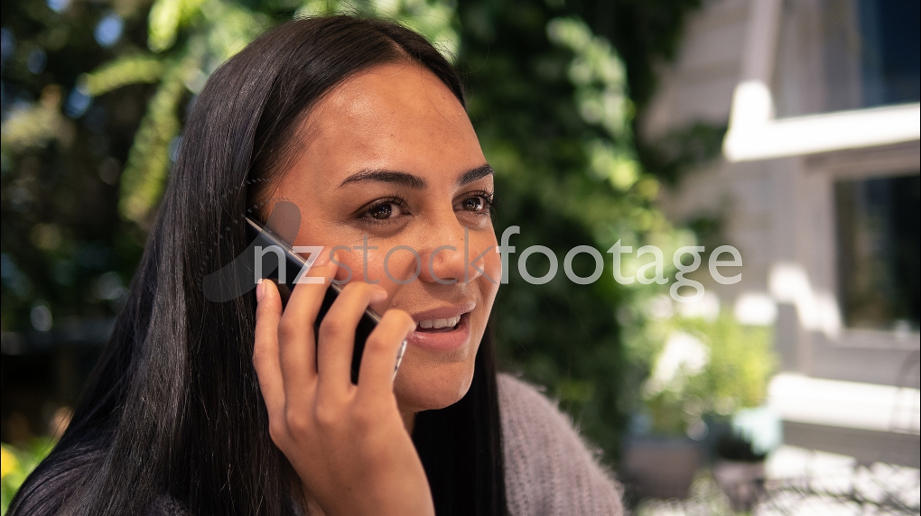 Young Māori woman talking on mobile phone portrait. Listening
