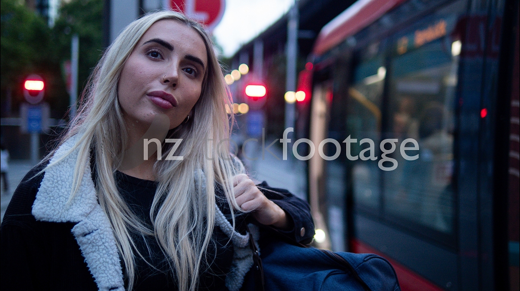 Young Woman Waiting for Train Light Rail Sydney circular Quay - P1253316